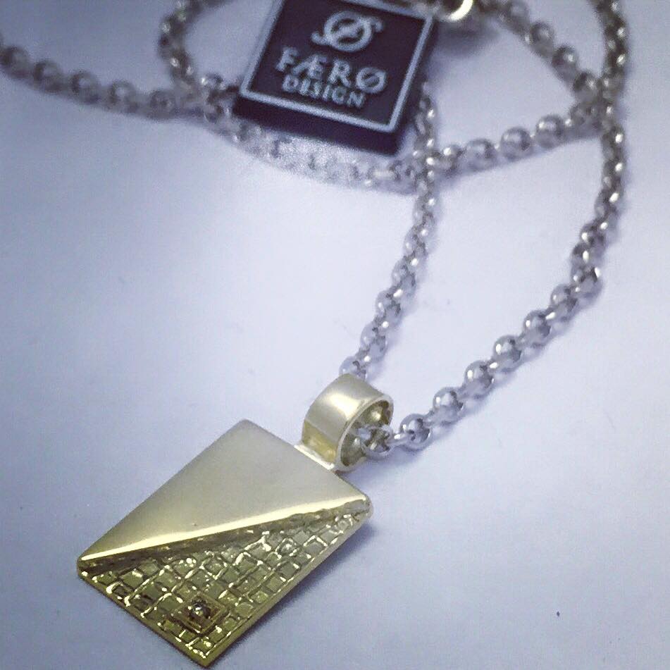 / Anheng, med rh. sølvkjede gullplate i 585