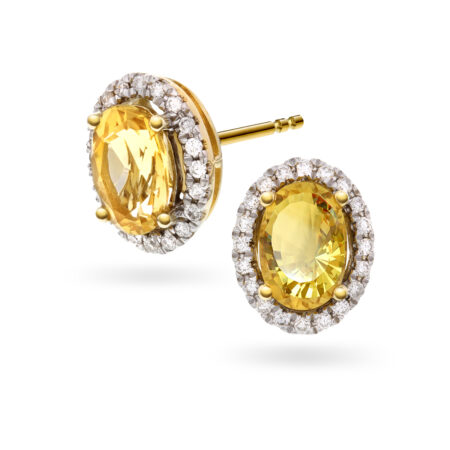 Eit klassisk og elegant rosettanheng med ein nydeleg blå safir omkransa av 10 diamantar.