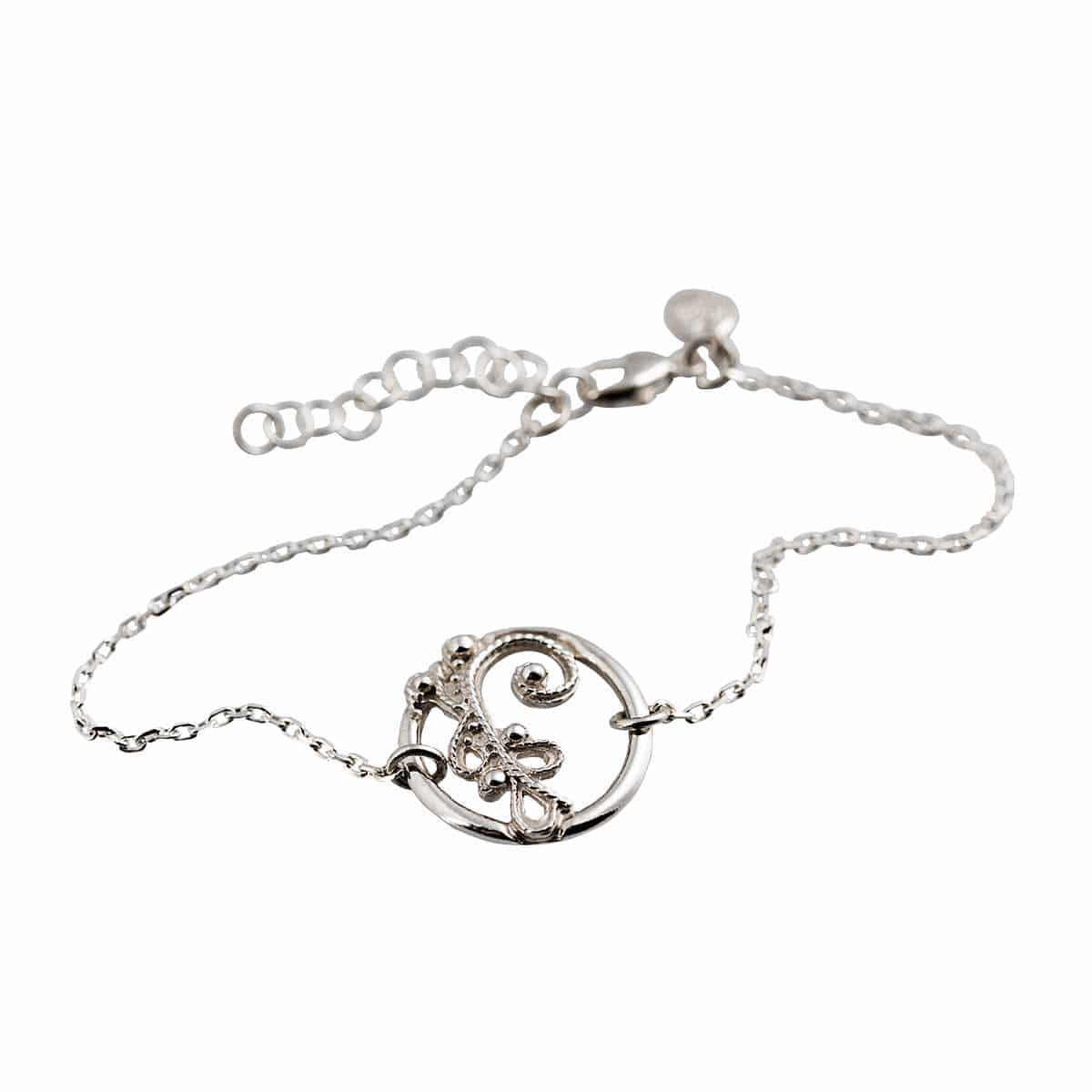 925s. Eventyleg armbånd inspiert av filigransteknikk, sagn og eventyr. Lengde 19cm.