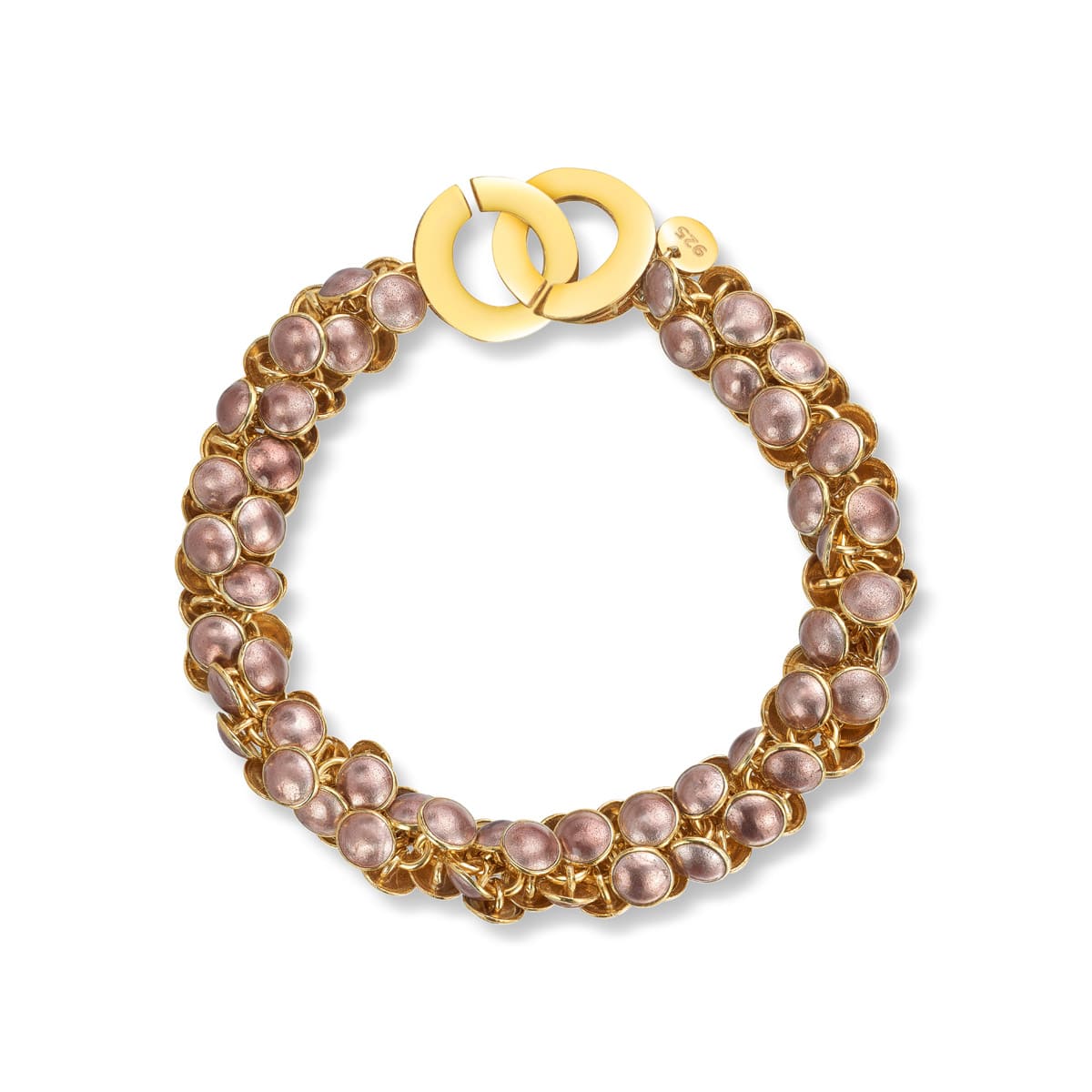 Seashell bracelet pink, gold plated, silver and enamel, 20 cm.