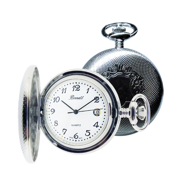 Bonett lommeur, chrom, quartz. Inkl. kjede.