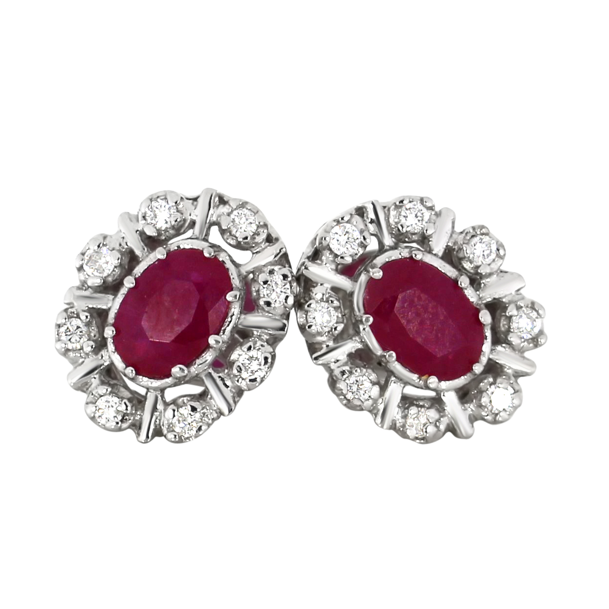 Elegant og klassisk rosett ørepynt. Rubinen er omkransa av 8 diamantar (0.16ct).